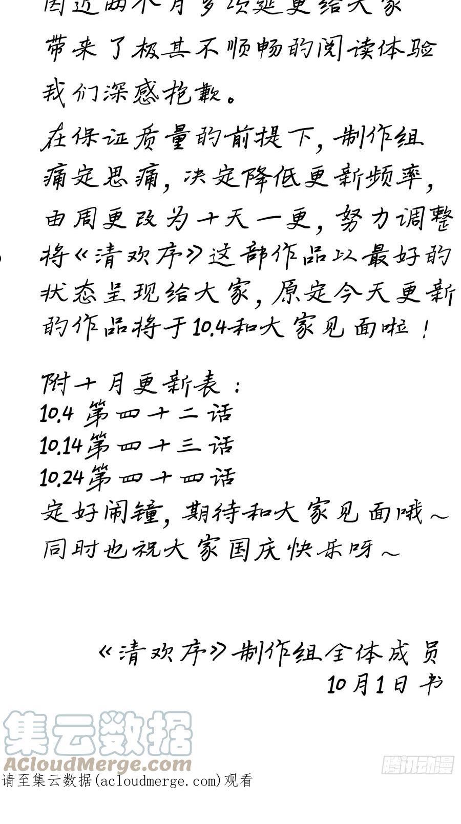 购买 清欢序 延更公告及更新时间调整