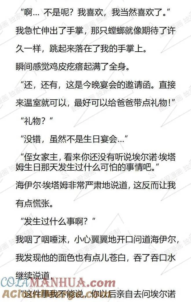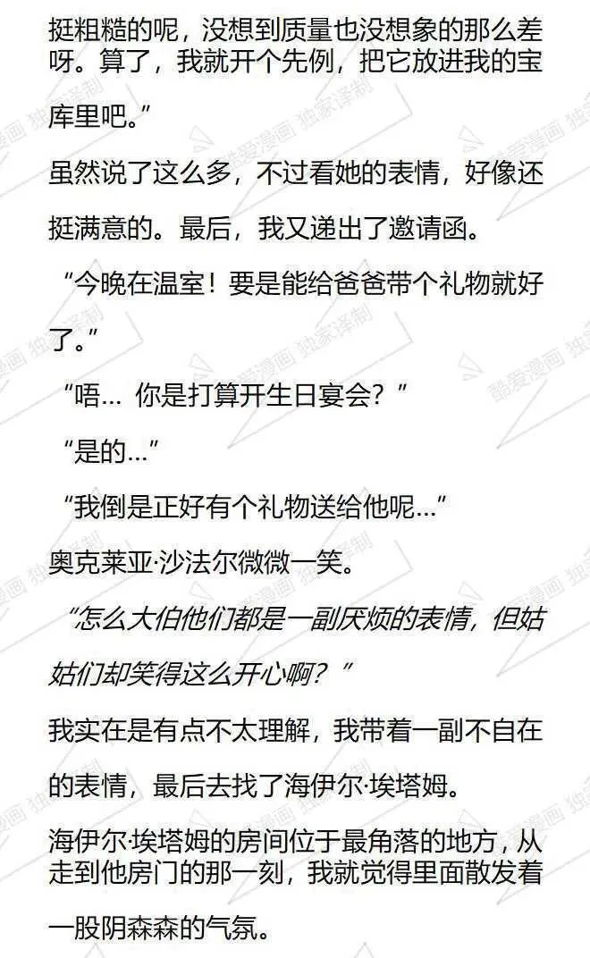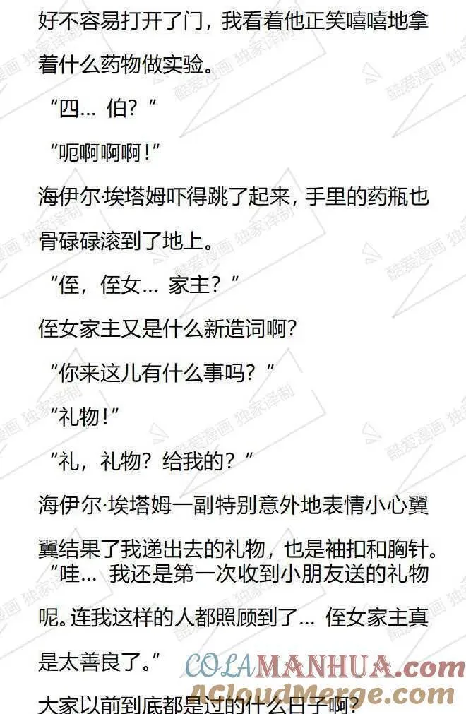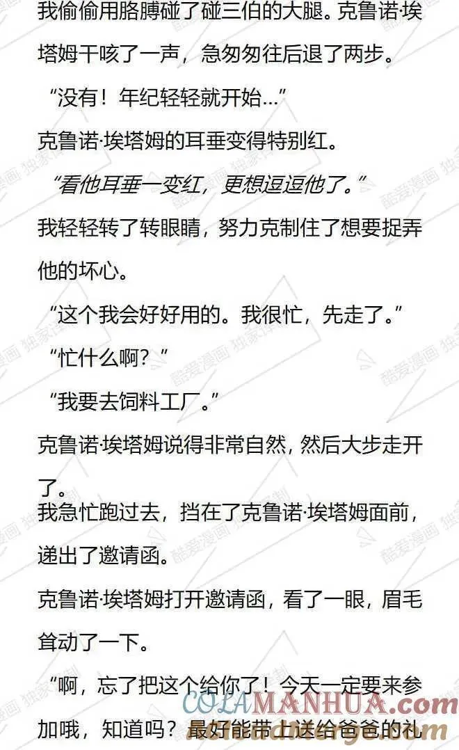 小说版被恶棍们抚养中又名,类型为日常|奇幻的高人气漫画,漫画简介:【小说内容从第28话开始,对应的漫画章节为第22话,1-27话的小说内容等后续补全。】本以为我只是个私生女..没想到还要和家人分道扬镳成为陌生人?附身在配角身上1年后,我幡然醒悟,我马上就要被赶出家门...