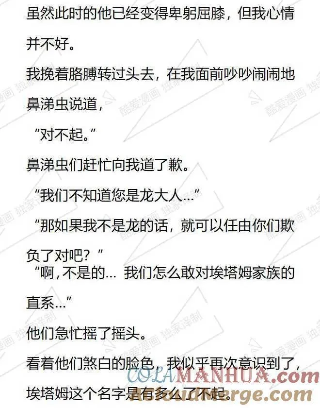 小说版被恶棍们抚养中又名,类型为日常|奇幻的高人气漫画,漫画简介:【小说内容从第28话开始,对应的漫画章节为第22话,1-27话的小说内容等后续补全。】本以为我只是个私生女..没想到还要和家人分道扬镳成为陌生人?附身在配角身上1年后,我幡然醒悟,我马上就要被赶出家门...
